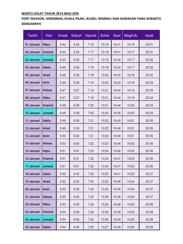 Waktu Solat Johor Bahru Kota Tinggi Mersing Hari Ini